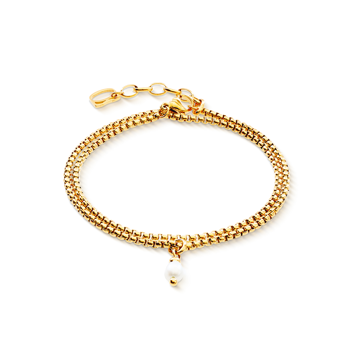Das Multiwrap Armband in Gold überzeugt durch seine fließende, moderne Leichtigkeit. Feine Kettenelemente verbinden sich zu einem eleganten Design, das durch eine edle Süßwasserperle stilvoll akzentuiert wird.