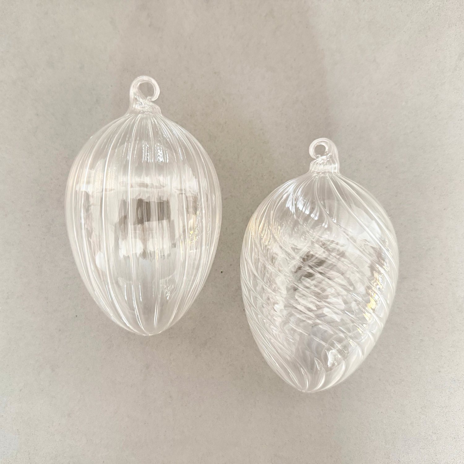 Glas Eier mit Glas Öse, mundgeblasen, optisch geblasen, gedrehte „Steifen“ und „Streifen“