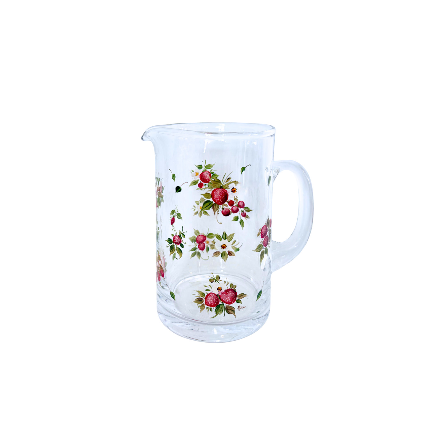 Handbemalter Krug, mundgeblasen, Erdbeeren