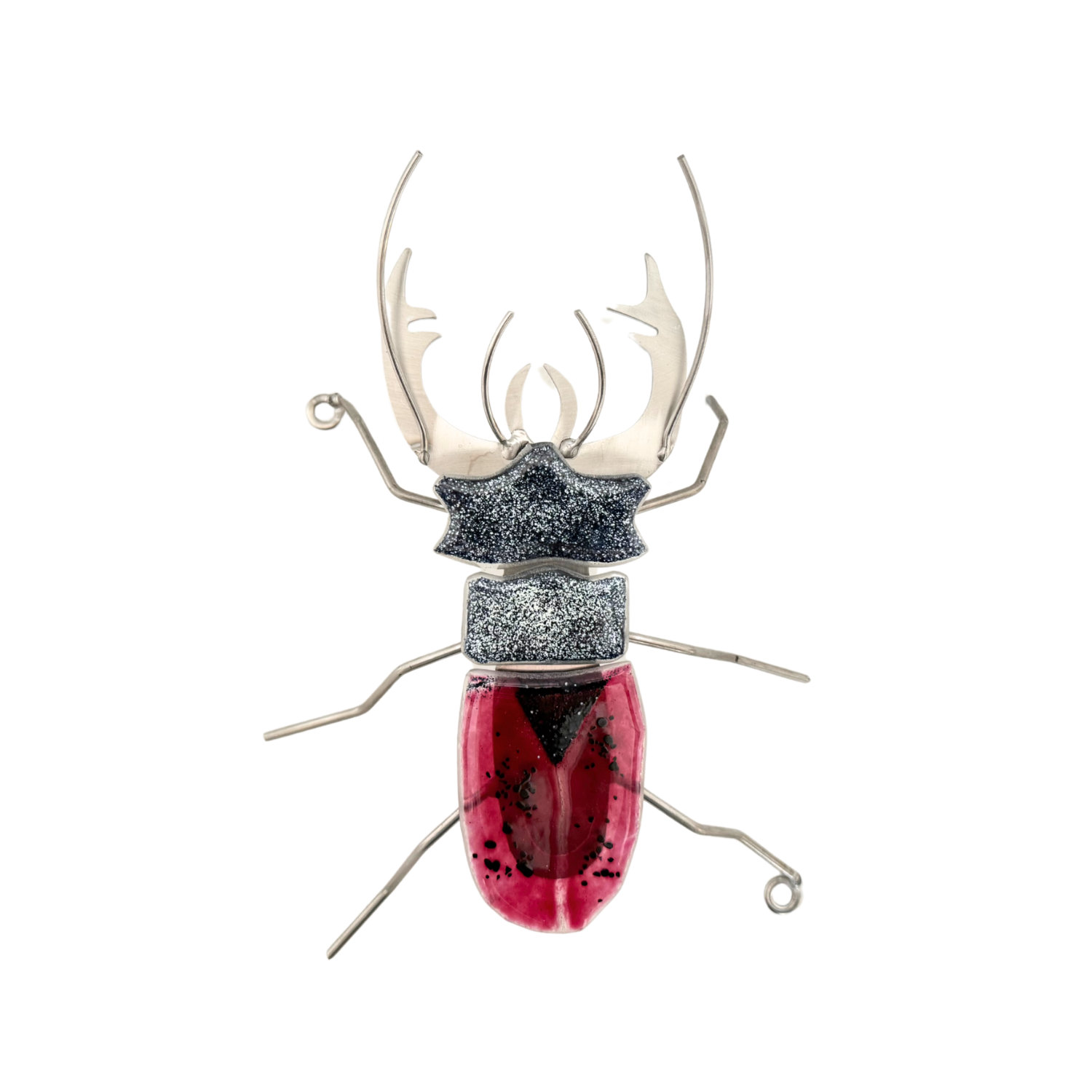 Handgefertigte Figuren aus rostfreiem Edelstahl, in Verbindung mit gefusten Glasscheiben und Farbmehl