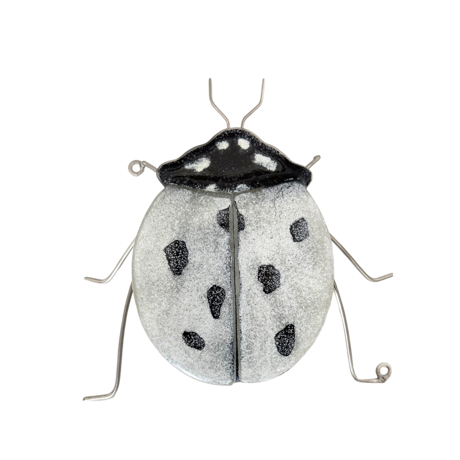 Handgefertigte Figuren aus rostfreiem Edelstahl, in Verbindung mit gefusten Glasscheiben und Farbmehl