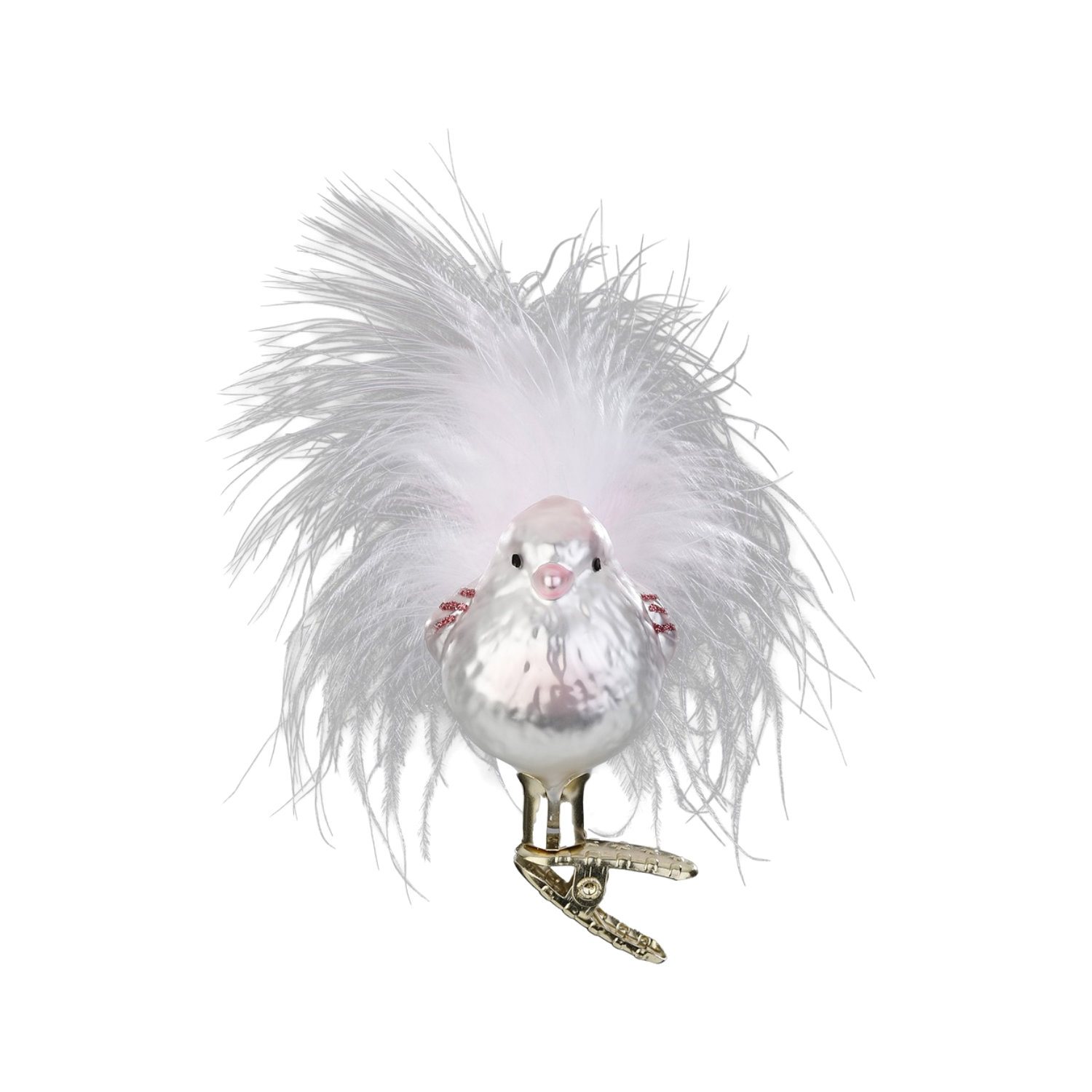 mundgeblasene, handdekorierte Figur zum Zwicken, Vogel, weiß-rose