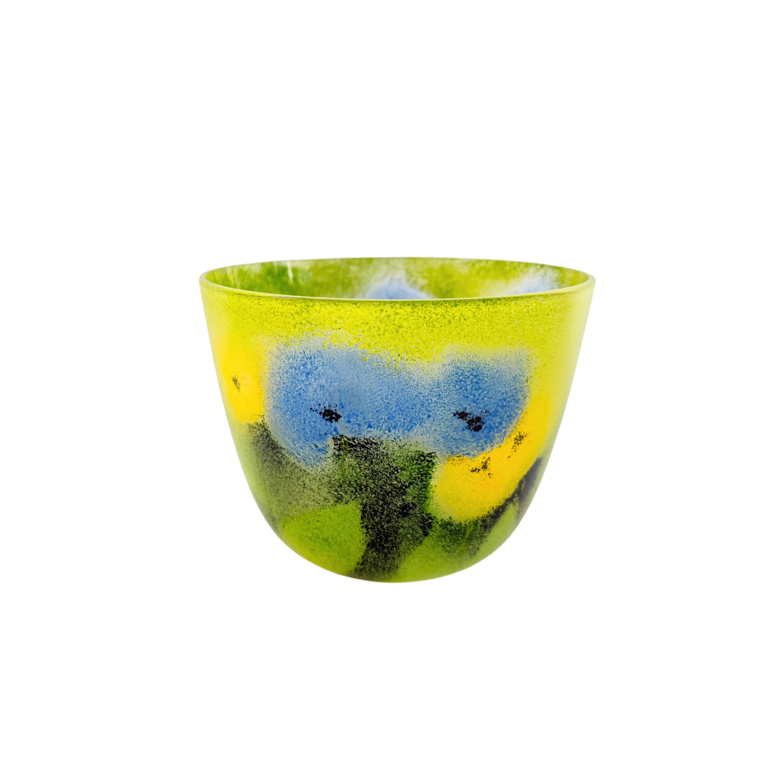 Schale, blaue und gelbe Blume, handbemalt, mundgeblasen