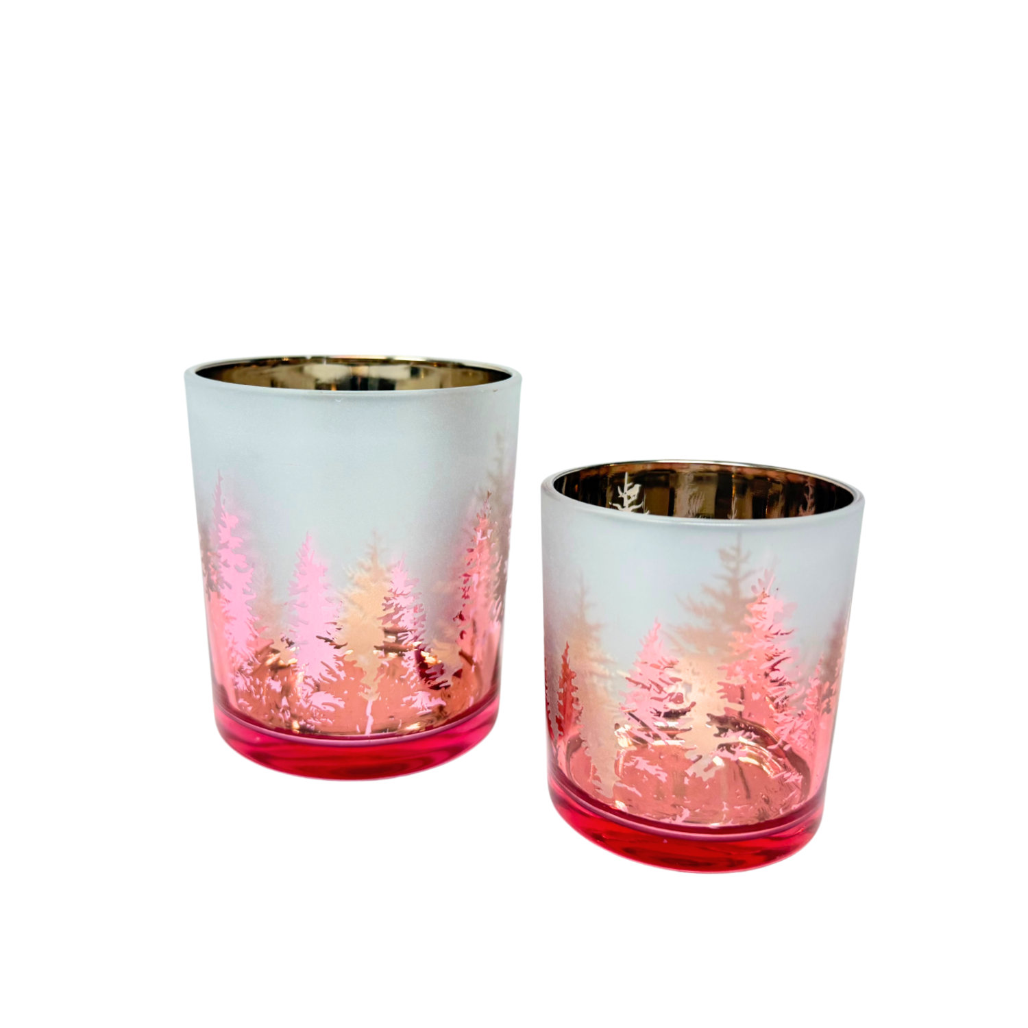 Teelichtgläser Trees frosty rosa