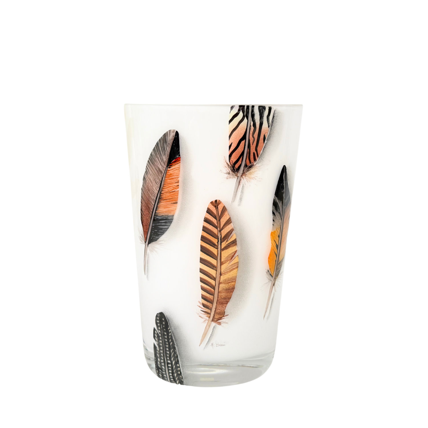 Vase oval handbemalt, Federn