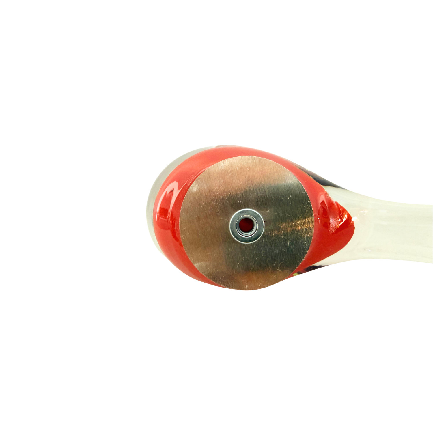 Zur Befestigung auf Stab, ist eine Edelstahl-Scheibe mit integriertem Gegen-Gewinde M 8 speziell geklebt und somit wetterfest.