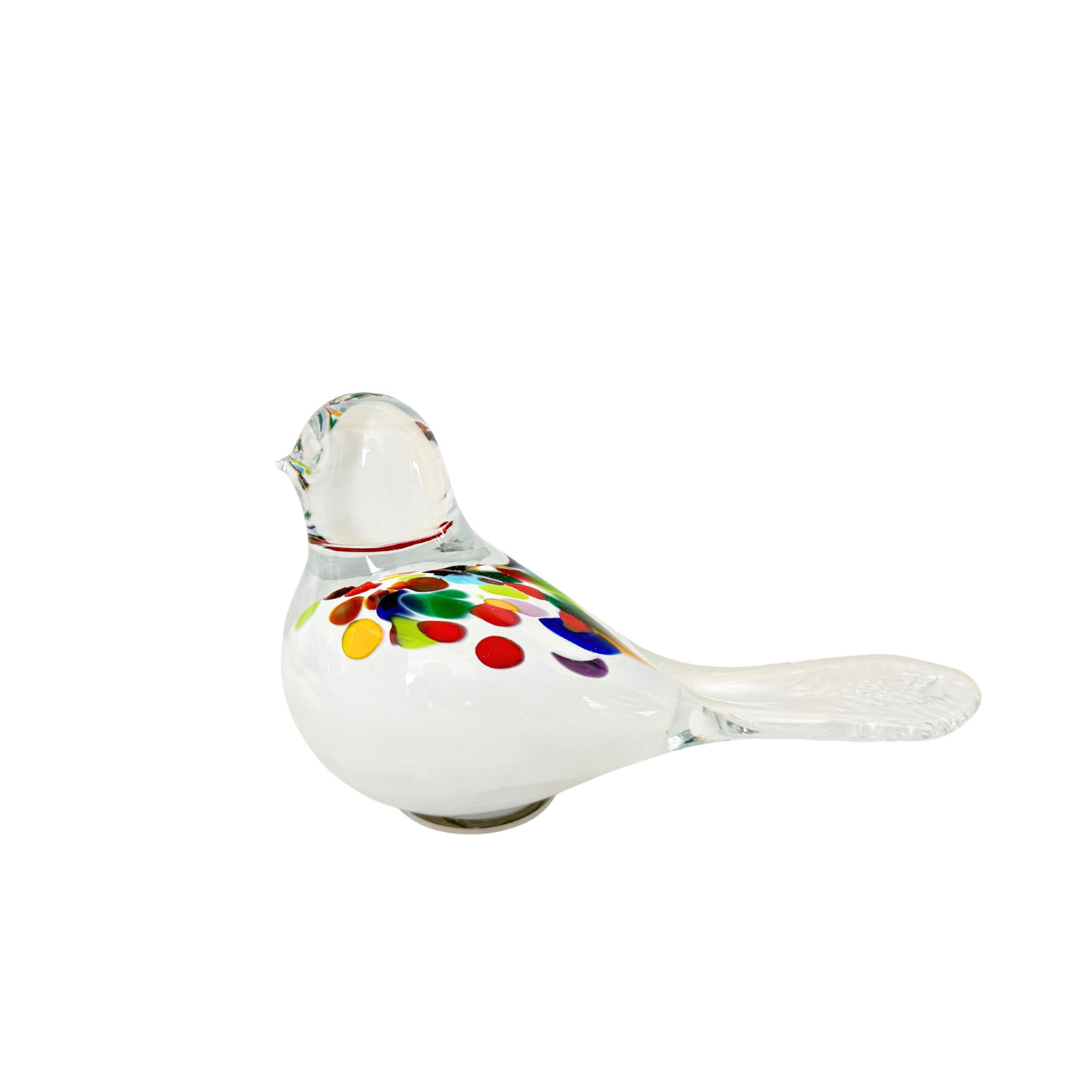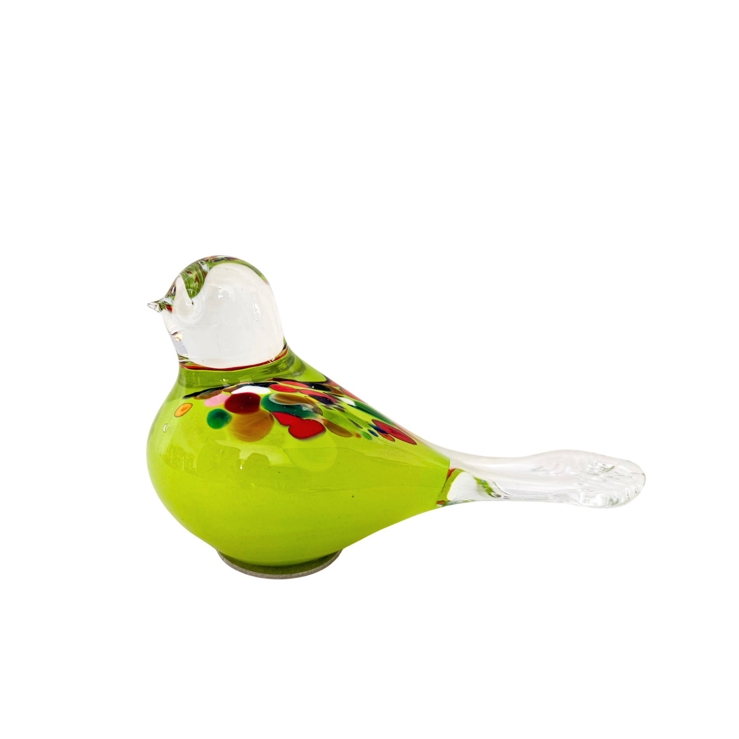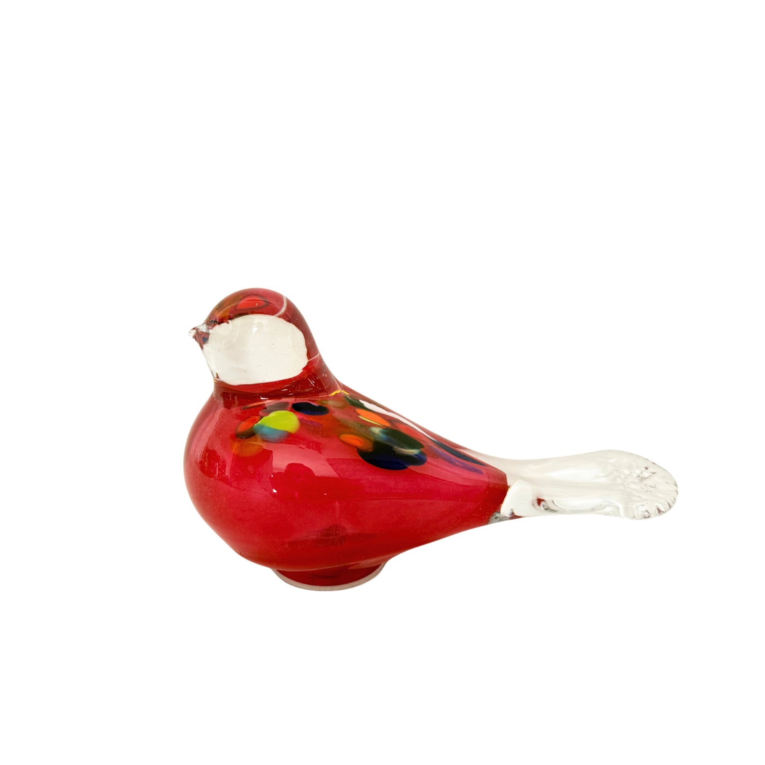 Jeder Vogel ist ein Unikat, Freihand-geformt, mit buntem Glas im inneren und nochmals mit Kristallglas überstochen.