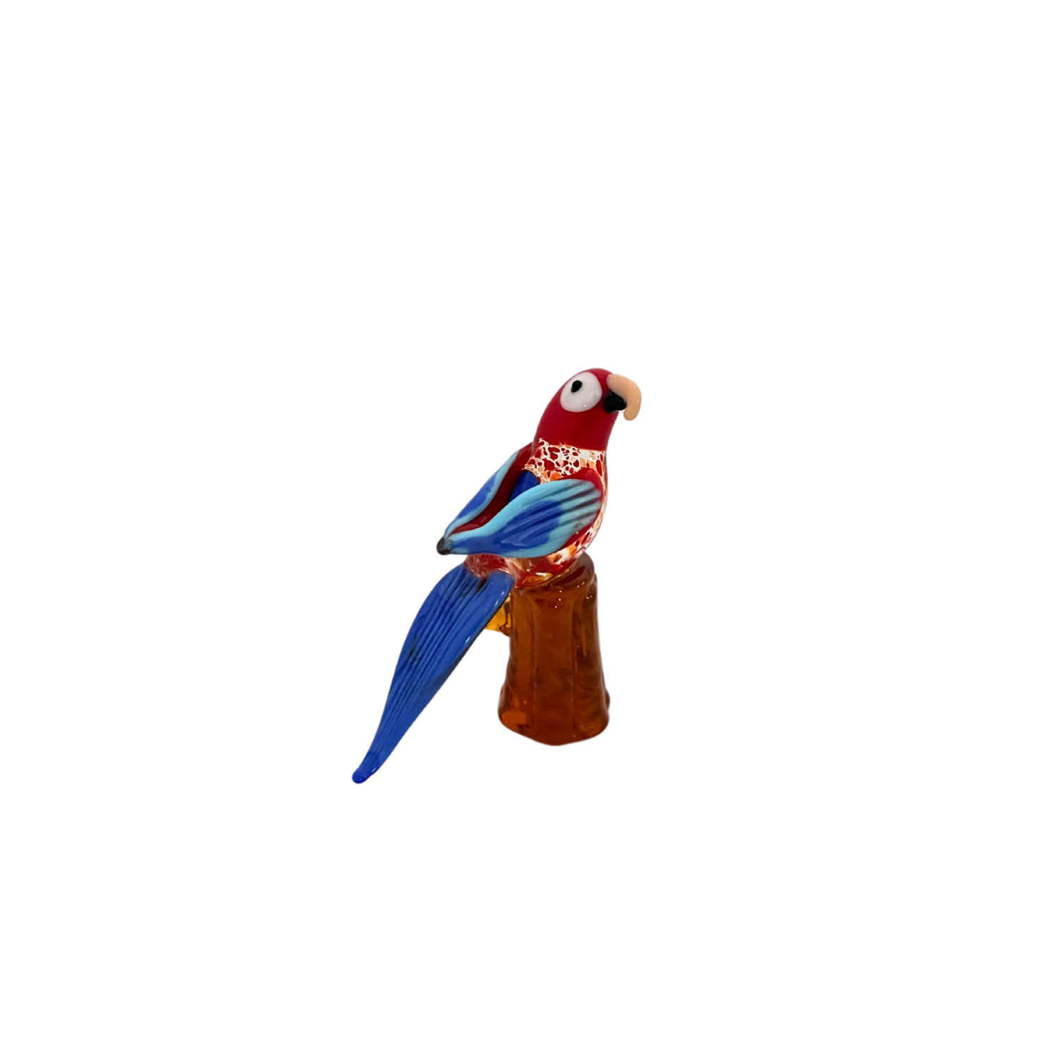 Glasfigur Papagei auf Ast rot-blau-braun-kristall